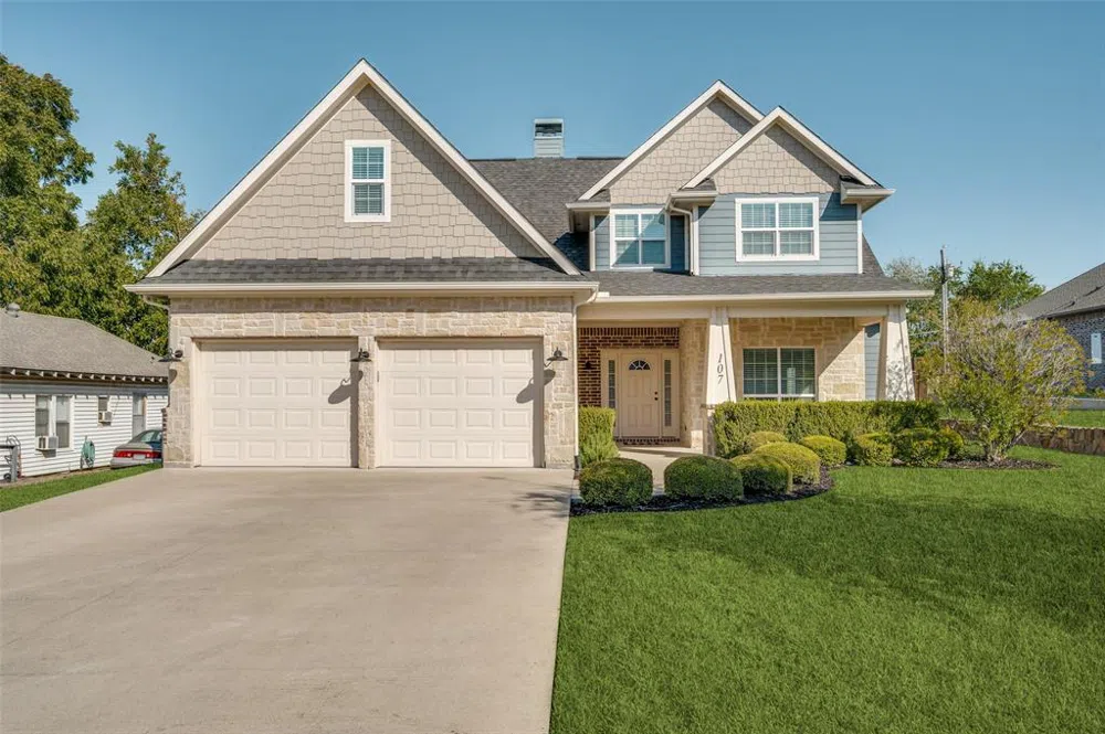 WELCOME HOME! Prosper ISD. Truly turnkey property with lawn maintenance and service included. This custom 4-bedroom home offers spacious two-story living in the heart of downtown Prosper. Featuring an inviting open-concept layout, ample natural light, and wood floors throughout. Enjoy a gourmet kitchen overlooking a spacious vaulted living area with a fireplace and built-ins. The primary suite offers a built-in study nook and en-suite bathroom with dual vanities and a walk-in closet. Upstairs, there are three large bedrooms, two full bathrooms and an oversized flex space ideal for a media room or home office. Huge fenced in backyard and covered patio. No HOA and located in the highly sought-after Prosper ISD.