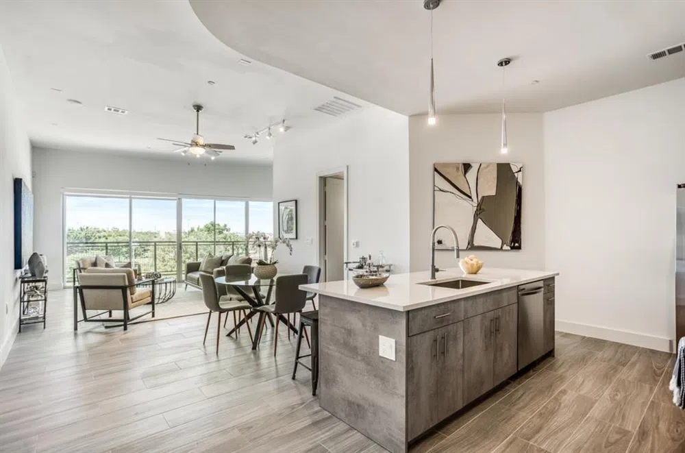 Come see the features of your new community, Destinations offers an outdoor sky lounge featuring dining areas with grills. Our grand lobby offers conference areas and workstations, elevator access, electric charging stations and a private parking garage to benefit our residents. Our units boast an array of floorplans to choose from with varying layouts. These homes have an open concept with living, dining and kitchen areas. The galley style kitchen with island is equipped with white quartz countertops, tile backsplash, Nolte cabinets and high-end stainless-steel appliances including washer and dryer. All units offer hardwood flooring, full wall windows and sliding glass doors offering unparalleled views. Partly enclosed separate room with closet off living area, perfect flex space. Nice size bedroom will accommodate large furniture. The bathroom offers a glass walk in shower and custom closet. Schedule an appointment today to inquire about our specials!