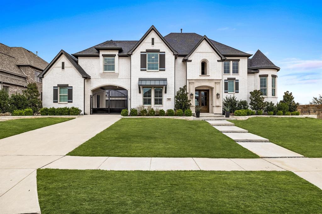 Exquisite Pfeifer custom home sits high above Saddle Creek in the heart of booming Prosper, TX! Private resort style backyard with a heated pool and spa, outdoor living space, covered patio, and fie pit with entertaining area. The primary bedroom is downstairs with an additional guest bedroom down as well. Open kitchen with white cabinetry, a huge stone island, and an abundance of cabinets and countertop space. Hand scraped hardwood floors. 4 en-suite bedrooms upstairs along with a built in desk perfect for school work. Office on the landing level with gazebo style ceiling and tons of natural light. Elegant Primary bathroom w dual sinks, walk in shower, and soaking tub with walk-in closet. Beam accented ceiling in family room with so much natural light. Dining room has views of the spectacular backyard. Full smart home integration including the automatic blinds on all windows. Bonus room adjacent dining area with bar. This home is a show stopper with no detail overlooked.