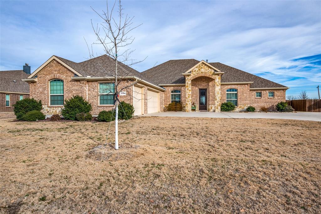 Gorgeous 4 bedrooms, 3 full baths, 3 car garage on almost half an acre lot. Big entry with 17x17 tile. Formal dining can hold a table for 8+. Huge formal living can be a game room! Open kitchen, nook, den! Gourmet kitchen with stainless steel appliances, gas cooktop, vent a hood, micro, tall cabinets, tile b-splash with glass tile inserts, granite counter tops, under mount sink, b-bar, corner pantry! Split primary and 1 bedroom with a full bath! Den has a wall of windows, a corner cast stone gas start fireplace, wall for an entertainment center or flat-screen TV. Huge primary bedroom with bay window sitting area, double doors, & ceil fan. The primary bath has 2 sinks, knee space, a mud pan shower, a tub, and a linen closet! Split 2 bedrooms, full bath with 2 sinks and linen closet. 1 bedroom has 2 closets. Dual-zoned ACs. Rounded corners. Upgraded light fixture. Huge backyard enough for a pool and play yard. 21X10 covered patio. Security. Sprinklers.