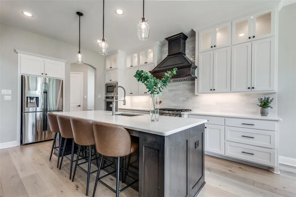 Nestled within the Star Trail community and minutes from the Dallas North Tollway, this home combines luxury with convenience. Features include a spacious 3 car garage, home office W French doors, a gourmet kitchen with an oversized island, and dual convection ovens. The breakfast room, surrounded by windows is bathed in natural sunlight. Adjacent to the dining room, a Butler's Pantry awaits, replete with a built-in desk, ideal for organizing household affairs or serving culinary masterpieces. The opulent main bath, has dual vanities, a soaking tub, glass front linen cabinets, and a separate shower. Upstairs, a catwalk gracefully connects 2 bedrooms and the game room with another guest bedroom. Outside, an extended patio adds another great living space that overlooks an expansive backyard. Located within the highly coveted Prosper ISD. No MUD or PID tax. Seller is motivated!