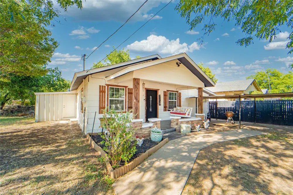 Take a look at this charming, fully furnished, 3-bedroom, 1-bath home that has been thoughtfully renovated and is ready for move-in. The spacious living area opens up to a huge kitchen, making it the heart of the home. This kitchen stands out with its beautiful cabinetry, large butcher block island, and stainless steel appliances, making it ideal for both cooking and entertaining. The primary bedroom offers ample space and is conveniently situated close to the bathroom. Across the home, the two guest bedrooms are nicely separated from the primary, ideal for family or visitors, adding an element of privacy to the layout. Outside, the home features a LG backyard complete with an above-ground pool and expansive deck, perfect for barbecues and pool parties. A privacy fence surrounds the property and an attached storage building add practicality. Windows were installed throughout in 2021, and new roof was installed in July 2024. Fresh exterior paint enhance the home's value and curb appeal.