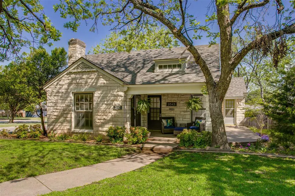 Long list of updates and improvements to this adorable austin stone cottage on a corner lot located in N Oak Cliff! 2025 entire Interior painted, sewer line with 10 year warranty, refinished bath tub, plumbing under kitchen, bath and laundry, laundry vent stack, front and back landscaping, garbage disposal. 2023, roof on house and garage. Other improvements include HVAC system, electric panel and service mast. Step inside and you will love the open layout with large living room, dining room and kitchen combination. The living area is highlighted by large windows, hardwood floors, built-ins and a gas fireplace. The kitchen has period character and charm while offering a good amount of space to cook and entertain. The 2 large bedrooms share the renovated hall bath with dual sinks, tub-shower combo and period tiles. The primary bedroom features a large bonus room with washer-dryer but would be a terrific space for a primary bath, walk in closet and laundry. Step outside and enjoy the fenced yard, 2 car oversized garage and gardens on the large corner lot! A terrific opportunity to purchase on one of the best streets in the neighborhood at an attractive price!