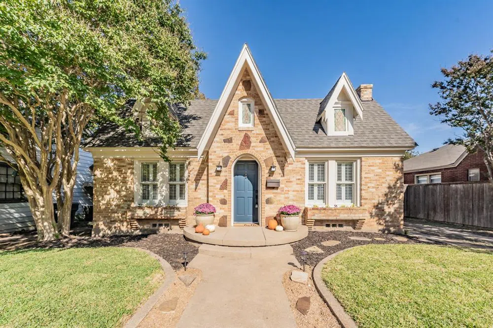 This beautifully renovated Tudor-style home exudes charm and modern elegance. With 4 bedrooms and 3 baths, it offers a spacious layout—2 bedrooms and 2 baths downstairs, and 2 bedrooms connected by a dual bathroom upstairs. Signature Tudor features like a steeply pitched roof, stonework, and leaded stained glass dormer windows add to its timeless appeal. Inside, a creamy neutral palette pairs with black doors and white oak hardwood flooring, complemented by a cozy gas fireplace. The new kitchen boasts soft-close cabinets, leathered granite countertops, and a hexagonal backsplash, complete with a gas range and dishwasher. Outside, new landscaping features a lush St. Augustine lawn, a Windsor wall, mature crepe myrtles, and a gated driveway. The oversized backyard includes a large storage shop, privacy fence, and a huge covered patio with an outdoor kitchen and built in gas grill. Upgrades include all-new sewer, plumbing, electrical, HVAC, and a roof with energy-efficient spray foam insulation, ready for the next chapter.