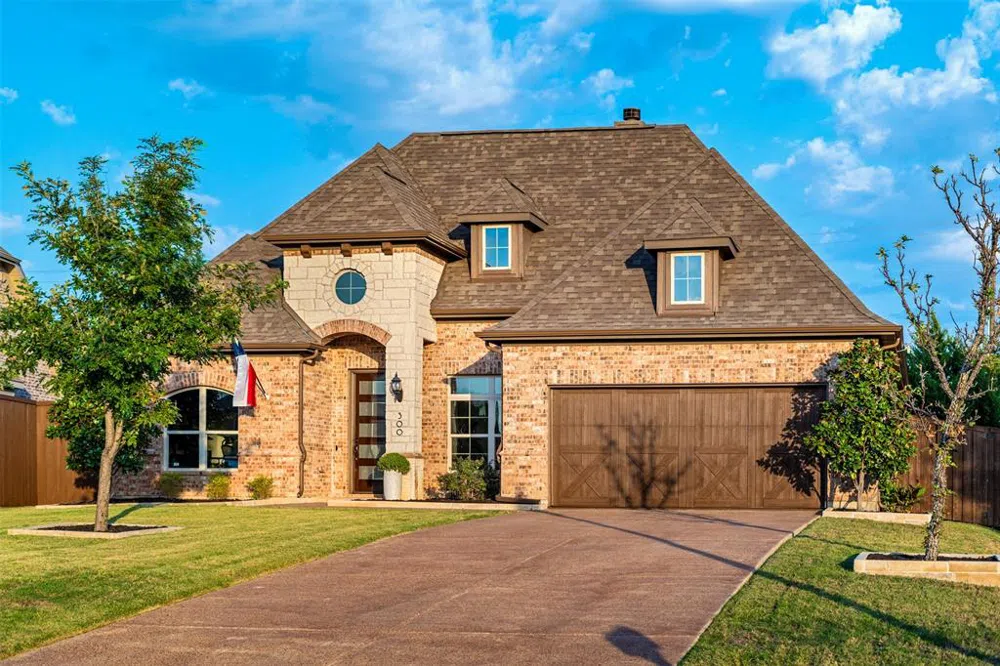 Gorgeous, contemporary, meticulously maintained, lifestyle dream home right in the heart of Prosper! Located in the Original Prosper High School zoning, just north of precious downtown Prosper and in the action near sports fields, stadium and near all the action and growth of the Frisco-Prosper development like PGA and Universal! This immaculate, custom designed cul-de-sac property features 4 bedrooms, 2.5 baths, formal dining, and intentionally designed in-home office. A rare one-story floorplan with soaring ceilings, 8.5-foot doors, custom lighting, crown molding and is move-in ready. Living areas are open with detailed wood beam ceilings, entertainer's kitchen with island, new designer faucets, chef grade range, and farmhouse sink, complete with eat-in nook and surrounded in windows to view your private paradise. The owner's suite is spacious, with high ceilings, soundproof windows, and additional exterior door leading to your back yard dreams. Ensuite has separate oversized walk-in shower and soaking tub and double sink vanity, with attached grand walk in closet with ceiling fan. The showstopping, intentionally designed back yard is amazing! The extended back covered patio has enough room for living area, dining, and cooking, complete with party lights, two TV mounts, and built in-kitchen. A new beautifully designed glass tiled pool with sun shelf and cascading hot tub built in 2021 with two waterfalls is surrounded by travertine tile and is fully automated by app with heating and cooling. The oversized quarter acre lot still has room to run in the grass and has additional pergola seating, with a great sunset view. New roof to be installed prior to closing. Do not hesitate to come see this one in a million property. This is what you have been waiting for, it is time to move!