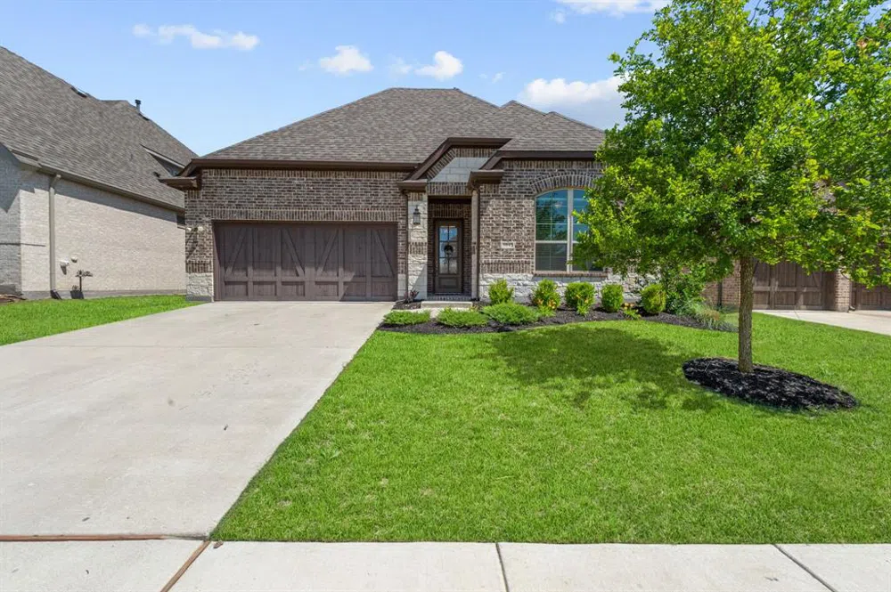 Beautiful 1 story home located in the prestigious master planned community of Mustang Lakes. This 4 bd, 3bth with study offers an open floor plan, light colored engineered wood floors in entry and common areas, custom woodwork, & barn door. The open floor plan makes this home perfect for entertaining with large family room & gas fireplace. Kitchen has large island w quartz counters, white cabinets w hardware, Bosch dishwasher, double oven with gas cooktop, under cabinet lighting & large walk-in pantry. Updated fixtures throughout. Study has glass french doors with wood floors. Primary suite is light & bright w plenty of windows overlooking the backyard, large walk-in shower, dual sinks & walk-in closet. 3 additional bedrooms & 2 full baths. Mustang Lakes is resort-style living, w pools, clubhouse & fitness center. A perfect home to rent while you are building your dream home in Mustang Lakes or surrounding neighborhoods. Prosper ISD!