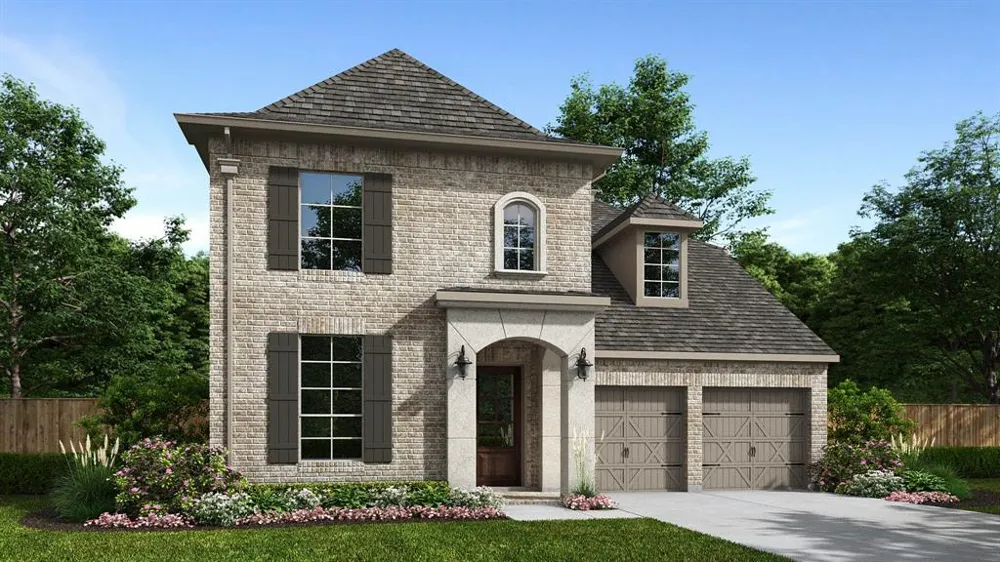 Two-story entry with 20-foot ceiling. Home office with French doors set at entry. Formal dining room. Kitchen features an island with built-in seating space, walk-in pantry and Butler's pantry. Morning area features a wall of windows. Two-story family room with a corner fireplace and a sliding glass door. Secluded primary suite with a wall of windows. Primary bath with double door entry features dual vanities, a freestanding tub, separate glass-enclosed shower and walk-in closet. Secondary bedrooms, game room, media room and storage space complete the second floor. Mud room. Extended covered backyard patio. Three-car garage.