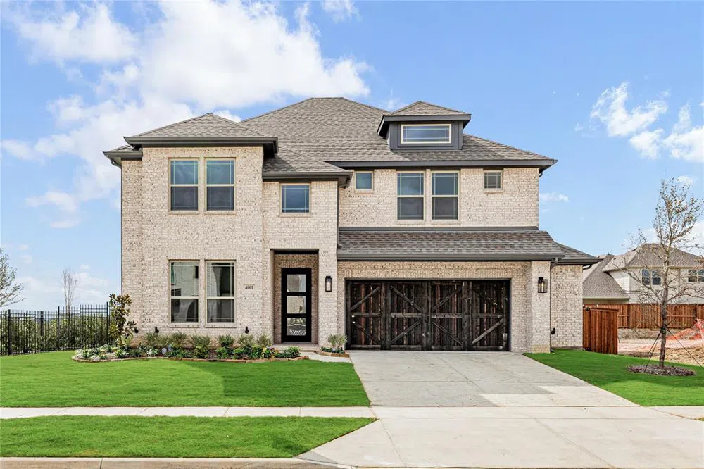 NEW! NEVER LIVED IN. Bloomfield's Rose III plan is a beautifully designed two-story home featuring 6 bedrooms, 4 baths, a Study, a Media Room downstairs, a Game Room, and a spacious Covered Patio with a gas drop for grilling. The striking exterior showcases a classic all-brick elevation with cedar doors on the 2.5-car garage, while the contemporary 8' front door sets the tone for the elegance within. Inside, soaring vaulted ceilings and handsome wood floors throughout the main living areas create a seamless flow, anchored by the stunning Fireplace in the Family Room. The Deluxe Kitchen boasts custom cabinetry, Quartz countertops, and a large island, perfect for casual dining or entertaining. With a tankless water heater, gutters, and upgraded finishes throughout, this home offers modern conveniences at every turn. Positioned on an Oversized CORNER HOMESITE facing North, comes with fresh sod, stone-edged front flower beds, and a sprinkler system. Pickle Ball, Paddle Boarding, Fitness Center, Pool, and more! Call Bloomfield today!