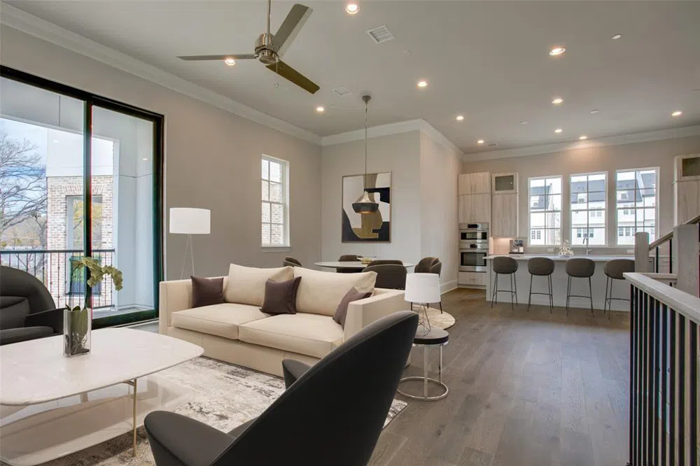 LARGEST MOVE-IN READY UNIT AVAILABLE at Cedar Branch, just minutes from Oak Lawn and the Medical District. This extra spacious 3-bed, 3.5 bath plan by InTown Homes features high-end finishes with plenty of space for entertaining and a stunning open staircase spanning all 4 levels. The main living level impresses with 12-foot ceilings, crown molding, and a 10-foot sliding panel door leading to a private balcony. The stunning gourmet kitchen features a Bosch stainless steel appliance package, exquisite quartz countertops, tile backsplash, and stacked upper cabinetry. Spacious, spa-like primary suite provides an ideal space to unwind, complete with gorgeous free-standing tub, walk-in shower and huge walk-in closet. Sustainable engineered hardwoods throughout entire home add to the upscale feel, while the rooftop terrace provides an inspiring space for outdoor entertaining or taking in the views. Community over 40% SOLD. Ask about current incentives. MODEL HOME: 4604 WARWOOD LN.