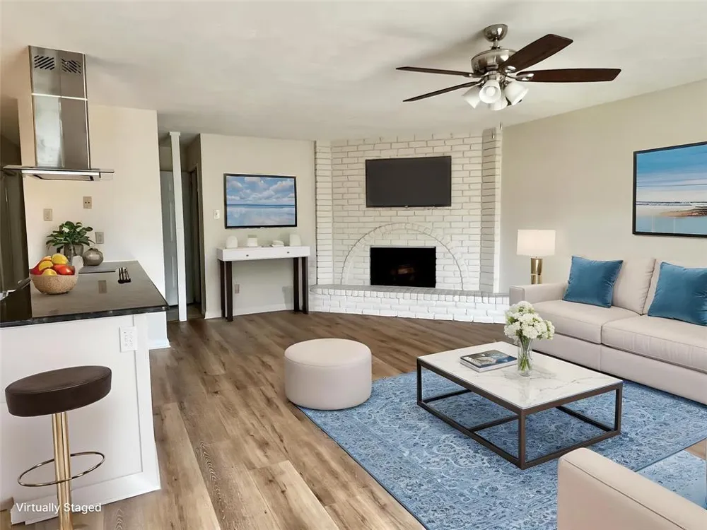 Welcome to your dream home in the heart of The Colony, TX, where suburban charm meets modern convenience. This charming brick home boasts an oversized one car garage and pretty drive up with mature tree. Upon entering, you'll be greeted by quality laminate flooring that flows seamlessly throughout the main living areas, adding both durability and warmth to the space. The interior of your property was freshly painted light neutral colors. The kitchen serves as the heart of the home, featuring luxurious granite countertops, a sleek new slide in range, and a stainless steel overhead exhaust. The open concept layout allows for easy flow between the kitchen, spacious living area, and dining space, complete with a cozy corner fireplace and ceiling fan. French doors lead out to the patio and large fenced yard, perfect for outdoor entertaining.The primary bedroom overlooks the backyard and offers fresh carpet, a ceiling fan, walk in closet, and ensuite bath with a tub shower combo. Two additional bedrooms also feature fresh carpet and share a hall bath with a tub shower combo. Fresh interior paint, carpet, and slide in range, and garage door opener 2025. Roof in 2017, HVAC in 2018. Located in the award-winning Lewisville school district, this home is conveniently situated just mins to Top Golf, Hawaiian Falls, Grandscape and other local attractions, 12 minutes to Legacy West, and 20 minutes to DFW Airport. Don't miss out on this opportunity to make this beautiful property your new home! No HOA!