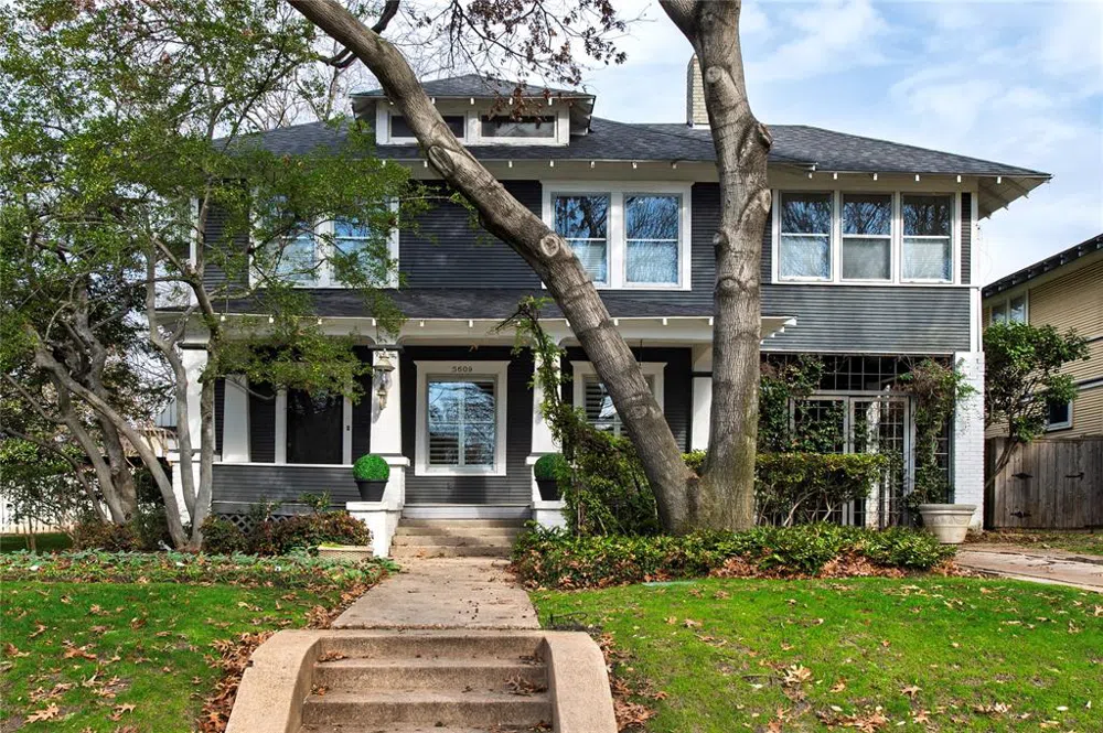 This original Craftsman home built in 1913 sits prominently on an elevated treed lot in sought after Vickery Place. Extensively renovated and expanded in 2001 by the owner, a thirty year D Best interior designer, its interior exudes the warmth and comfort of another time and place - the romance of a Provincial farmhouse replete with charming details inside and out. Its seamless renovation incorporates a combination of reclaimed materials and those made to look old including white washed fir ceiling beams, antique doors, European tile work, beautiful period millwork and pitch pine floors. Generous ceiling heights, an abundance of windows. recessed ceiling lighting, and a soft palette of blues and greens accented by artisanal decorative painting, bring the outdoors in while showcasing its excellent flow for entertaining. The downstairs features living and dining rooms, a kitchen open to both the breakfast and family rooms which look out to the lovely limestone paved patio and backyard French gardens. Upstairs offers three bedrooms, a study plus a third floor office. The romantic two story primary suite has French doors to a covered walkout living area overlooking the back gardens plus a spa-like bathroom with a free standing tub, separate shower, WC and dual vanities. Exterior amenities include the period front porch great for neighbor gatherings, two patio spaces a two toned gravel labyrinth and a boxwood maze which give additional places to play, wander or meditate. This property offers a wonderful opportunity to experience the nostalgia of a place in Dallas history whole affording the benefits and proximity of an urban lifestyle.
