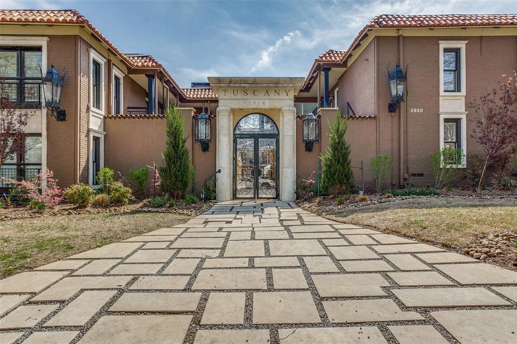 Welcome home to resort style living at the gated Tuscany Condos! Nicely appointed downstairs condo features open floor plan with see through fireplace, wood floors, and updated bathrooms! Spacious kitchen with serving bar, granite countertops, updated tile flooring, as well as stainless steel microwave and range. Private front and backyard have lush landscaping, great for outdoor living! Close to SMU, restaurants, and shopping. This fabulous community offers workout room, resort style pool, spa, fountain, courtyard, and grills.