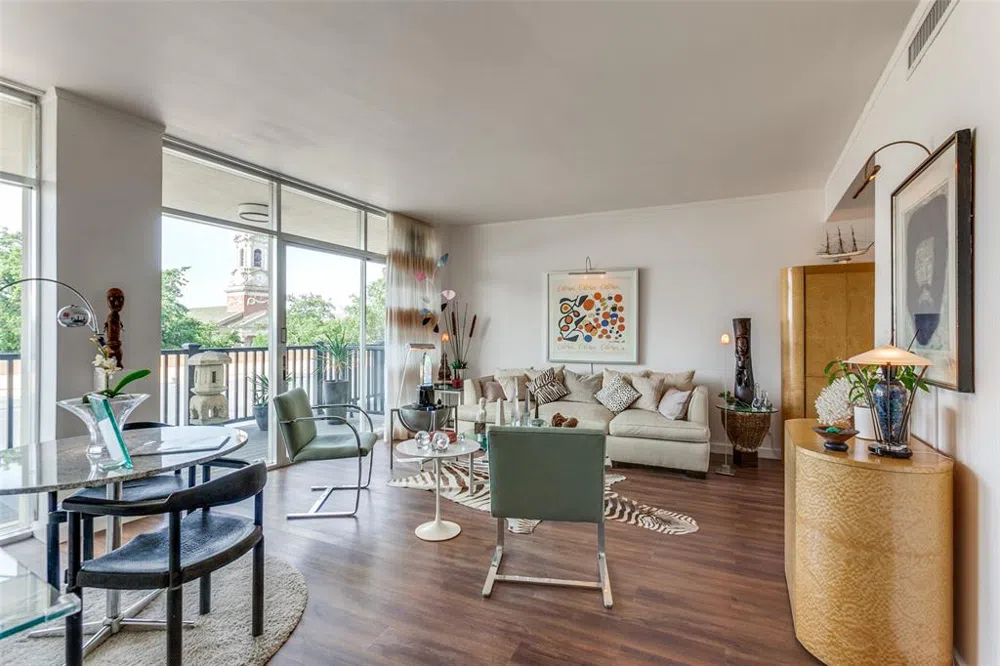 Stylish and sophisticated Preston Tower one-bedroom gem! Desirable “03” floor plan offers great natural light from south-facing wall-to-wall windows and pretty night views of Park Cities Baptist Church steeple. Newly rebuilt 23’ terrace constructed of long-lasting Trex Select decking. Finish detail includes decorative lighting, wall storage units, lux vinyl plank flooring, updated hardware, custom closet system & a sleek, modern bath. Kichen has granite, tile backsplash, farm sink and plenty of cabinet space. Monthly HOA dues cover all utilities & hi-speed internet service. Building amenities include 24-7 front desk & valet office attendants, assigned basement parking, fitness center, laundry facility, club room w kitchen, library, tennis court, dog park and garden pool area w fire pit. Preston Tower offers the ultimate lock & leave lifestyle in an unequaled Preston Hollow location with easy access to Preston Center, NorthPark, and Preston Royal shops & restaurants.