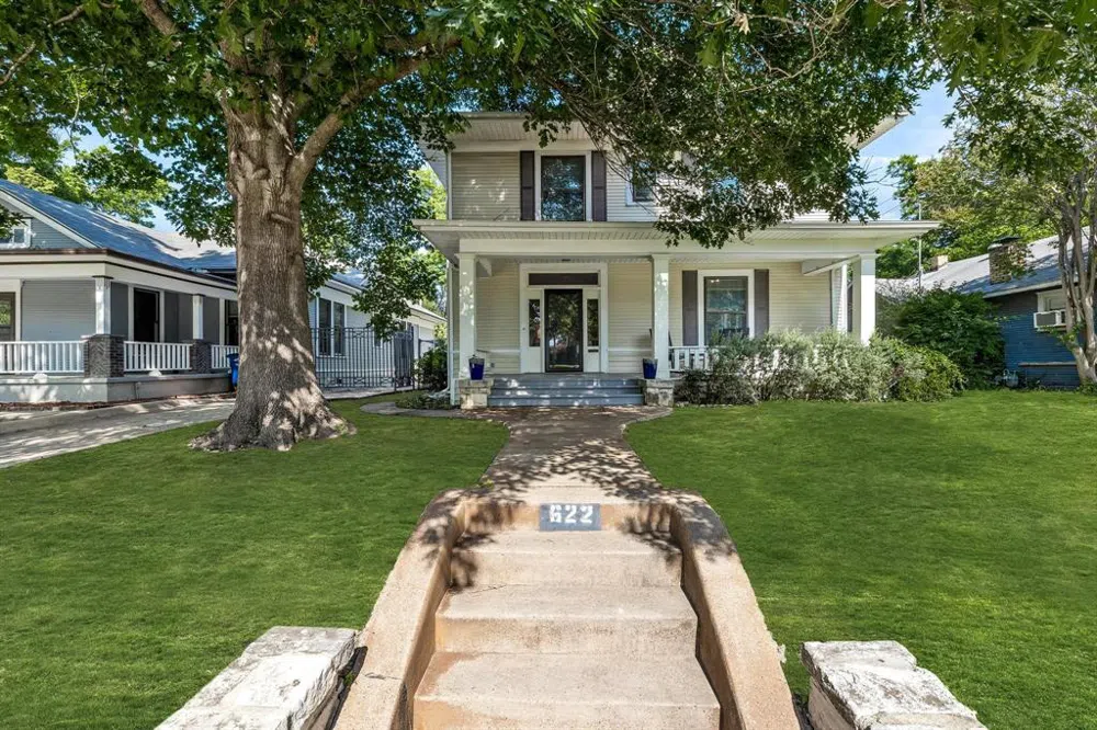 Located in the historic Bishop Arts District and just minutes from Downtown Dallas sits this charming 4-bed, 2-bath Prairie style home nestled among the tree-lined streets of this North Oak Cliff neighborhood. This delightful and well-maintained home features handsome hardwood floors, fresh paint, renovated bathrooms, great natural light, and updated kitchen with granite countertops, farm sink, and stainless-steel appliance package. The functional floorplan includes a spacious living room with beautiful fireplace that opens to the family room. Upstairs is a screened balcony porch overlooking the back deck and large, grassy backyard with firepit, all of which are perfect for entertaining. The neighborhood amenities include Stevens Park Golf Course, Trinity Groves, the Trinity Skyline Trails and walkability to nearby restaurants, a community pool at Kidd Springs Park and the picturesque trails of Lake Cliff Park. Ask about special financing available to own this piece of Dallas history!