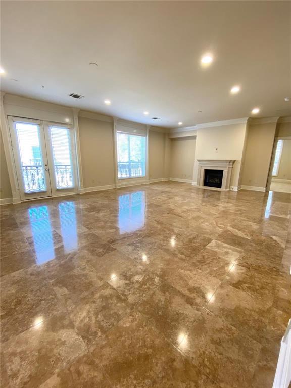 A MUST SEE UPSCALE CONDO conveniently located in prestigious Preston Hollow!!Walking distance to restaurants & shops! This property features on-site maint & mgmt, 24hr fitness center, outdoor pergola with grilling area & much more. This gorgeous 2 bed 2 & half bath with an office unit features luxury amenities including: travertine floors, Wolf range, convection oven, subzero refrigerator, high ceilings, generous living -dining room and separate den with skylight , large ensuite baths, spacious walk-in master bedroom closet,2 reserved parking spaces in gated garage. Abundance of natural light and Juliet balcony! This unit also has direct elevator access to the garage and lobby area.
