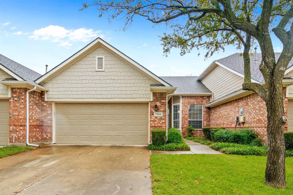 TURN KEY one-story townhome in PRIME location! Greeted by gorgeous wood floors, vaulted ceilings, NEW baseboards, door encasements, and neutral paint (2020) throughout. Stunning eat-in KTCH features newly refinished cabinets, granite counters, modern tile backsplash, SS appliances, sink, faucet, and beautiful lighting. Enjoy the spacious master with sitting area, dual walk-in closets and updated ensuite! Master bath includes NEW (2020) neutral tile flooring with show-stopping oversized frameless walk-in shower with bench seat. The upgrades continue with a double sink vanity and breathtaking Silestone counter, Kohler sinks and faucets, updated mirrors & lighting. Rennovated secondary bath full of sleek modern upgrades! Outdoor space offers open flagstone patio and grassy area w fenced yard which backs up to private tree-lined greenbelt area. Easy access to DNT, 121 & PGBT. MINUTES from Arbor Hills Nature Preserve, dining, shopping, & entertainment including Legacy West and Grandscape!