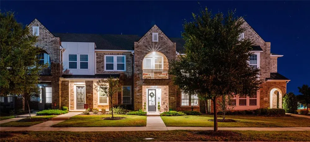 Experience luxury living in this custom-built CB Jeni townhouse, completed in September 2018 as part of the first phase of an exclusive community. This 2-bedroom, 2.5-bathroom, two-story home is one of the select few offering a covered porch, expansive balcony, and soaring vaulted ceilings, making it truly unique. Located on Sprangletop Street, named after a type of grass found in prairies, this home perfectly blends style and nature. Step inside to 23-foot ceilings and floor-to-ceiling windows flooding the space with natural light. A stunning crystal chandelier serves as a striking focal point. The master suite features his-and-hers walk-in closets and a spa-like bathroom with a walk-in shower. Upstairs, enjoy a media loft with custom surround sound. The extended garage, with epoxy flooring, fits both a truck and sedan. This one-of-a-kind townhouse offers luxurious features and a prime location, making it a perfect home. Owner is a Licensed TX RE Agent