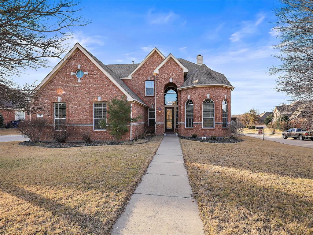 Preston Lakes at it's finest! As you approach the home you will notice the amazing curb appeal. The entry features split formals and flows seamlessly to the open concept living and kitchen area. The large living room boasts tons of windows, high vaulted ceilings, with the fireplace as the centerpiece. The kitchen features stainless steel appliances with a gas cook top, granite counter tops, an oversized island, tons of cabinets, a planning desk, and a huge pantry with extra storage closet. Situated separately from the other bedrooms, the primary suite offers privacy, a spacious bathroom with separate vanities and a walk in custom closet. The beautiful home office features built in cabinets and a coffered ceiling. The upstairs has 3 good sized bedrooms and a large game room. The backyard oasis is the perfect place to hangout and relax. The yard boasts tons of play space, a large covered patio, outdoor kitchen, and a large pool. All this and the home feeds into acclaimed Prosper ISD
