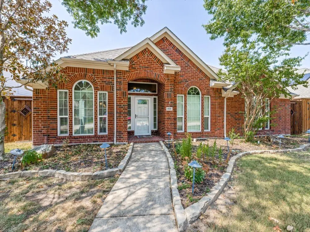 TONS OF UPDATES! Beautifully updated 3 bed, 2 bath home with den, 2 living areas, and 2 dining areas. Nestled in a serene cul-de-sac, with landscaped front yard and private backyard with newly maintained high fence, electric gate and brand new glass unclosed patio. Wood-look laminate flows through main areas and primary bedroom, with new carpet in split bedrooms. Kitchen boasts granite counters, new stainless steel appliances and large porcelain farm sink. Energy efficient with all new windows, all new insulation in attic and well maintained HVAC system. Long list of updates: new roof 2003, new glass enclosed patio, new gas range, new dishwasher, all new windows, all new attic insulation, new ceiling fans, new carpet, new storm door, new security cameras and smart doorbell. Refrigerator, front load washer and dryer, and microwave may convey with acceptable offer. Within sought-after Allen ISD, near parks, shopping, and dining.