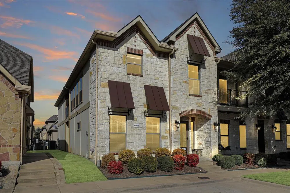 Absolutely stunning townhouse in Hemmingway at Craig Ranch, facing the open greenspace park area. Largely updated and well-maintained two story layout with a very functional and flexible floor plan. Kitchen, primary living area, dining, balcony, primary bedroom ensuite and a half bath on the second level. Truly beautiful, recently remodeled kitchen with all new cabinets, backsplash, quartz countertops, lighting and appliances! The openness of the dining spaces allow for a smaller set up near the windows, or a larger set up near the banister. A comfortable, spacious main living area with fireplace, wall-mounted TV and balcony provide a perfect setting for entertaining or relaxing. The primary bedroom suite is located at the back of the second level, offering a private retreat. The first level includes two bedrooms, one featuring a built-in Murphy bed, along with a full bathroom. Additionally, the first level offers a storage closet with a sliding barn door, a utility room, and a versatile flex space that can serve as a second living area, home office, or even a fourth bedroom, complete with its own sliding barn door for added privacy. Hemmingway is wonderfully situated just minutes from 121, grocery, retail, restaurants and schools.