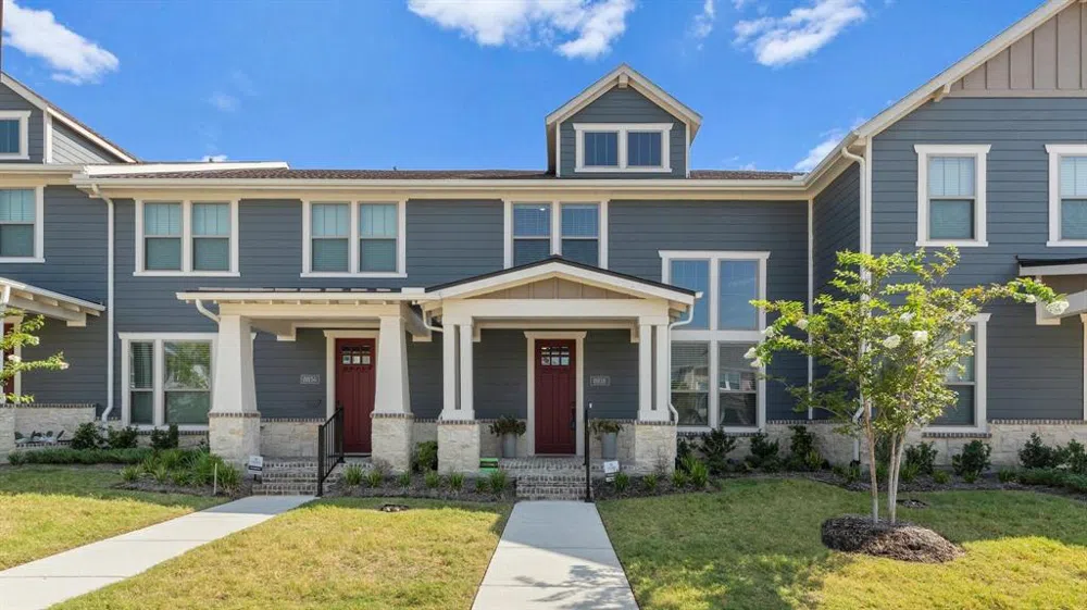 MOVE IN SPECIAL - 2 WEEKS FREE and NO DEPOSIT DUE AT MOVE IN!!! This 2-bedroom, 2.5-bath townhome in the Grove Frisco community offers modern living with exceptional amenities. Built in 2022, the home boasts 1,761 sq. ft. of stylish living space with high ceilings, an open floor plan, and plenty of natural light. The kitchen is a chef’s dream, featuring a large island, granite countertops, and built-in cabinets. Sit on your front porch and enjoy the low maintenance lifestyle, all landscaping included. Enjoy cooking in the chef's style kitchen with gas cooktop, stainless appliances, pot and pan drawers and more. 20' ceilings with volume windows in the living room, stream tons of natural light into the home. The large loft upstairs would be perfect for second living space or office. Primary suite is a true retreat, offering oversized shower, linen closet, and large walk-in closet. Secondary bedroom with walk-in closet and ensuite bathroom. The home is equipped with smart home features and high-speed internet, making it perfect for today’s digital lifestyle. Step outside to a covered patio area or enjoy the MASTER PLANNED community’s amenities including a clubhouse, fitness center, playground, multiple pools, and trails. A 2-car garage adds convenience and ease to your daily routine. Located within the Frisco ISD, this property is close to schools, parks, and shopping. *Half of one months' rent deposit due in 2 payments, over months 2-3 of lease.
