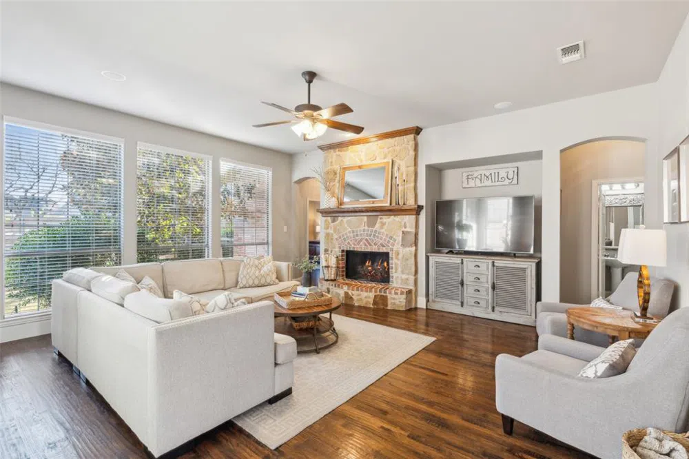 Welcome to your dream home in the prestigious LaCima-Stonebridge Ranch Community! This exquisite property offers the pinnacle of resort-style living with 4 bedrooms, 3.5 bathrooms, a game room, office, and media room. From the moment you step inside, you'll be greeted by the elegance of nail-down hardwood floors in the entry, office, dining room, living room, and primary bedroom. The office, conveniently located just off the entry, features double doors for privacy. The impressive foyer and dining room boast soaring ceilings that create a grand and inviting atmosphere. The heart of the home is the chef's kitchen, perfect for hosting and entertaining. Upstairs, you'll find 3 additional bedrooms, 2 full bathrooms, a game room, media room, and ample storage space. The outdoor area is a true oasis, featuring a pool-sized backyard, a drip system for plants in both the front and back of the home, and a large patio for outdoor gatherings. Enjoy the premier amenities of Stonebridge Ranch, which spans over 500+ acres and includes a Beach & Tennis Club, Aquatic Center with Jr. Size Olympic Pool, Pickleball Courts, Parks, Playgrounds, Community Room, Lakes, Ponds, Fishing, and miles of hike & bike trails. In addition, the home is within walking distance to the elementary school.